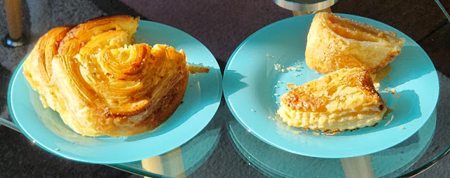 | Just kidding - here's our Day 4 healthy fruit. Pain aux raisins and chausson aux pommes. |